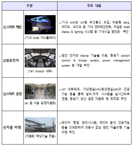 스마트 캐빈, 차세대 항공전자, 첨단제조·스마트 공장, 자율비행, 인공지능 등을 다루는 보잉 글로벌 R&D 센터는 한국이 최초로 세계 최대 항공기업인 보잉이 미래 항공기술 분야 협력 파트너로 우리나라를 지목했다는 점에서 높게 평가되며 글로벌 기업의 국내 R&D센터 투자를 통한 고급 일자리창출 외에도, 기체 구조물 중심인 우리 항공산업을 최첨단 고부가가치 분야로 고도화하는 계기가 된다는 점에서 그 의의가 있다.