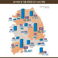 경기도가 전년말 대비 2.7% 증가한 4296만㎡이고 전체의 17.6%로 외국인이 가장 많은 토지를 보유하고 있는 지역이며 전남 3848만㎡, 경북 3,616만㎡, 강원 2187만㎡, 제주 2,175만㎡ 순으로 보유면적이 큰 것으로 나타났다.