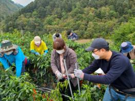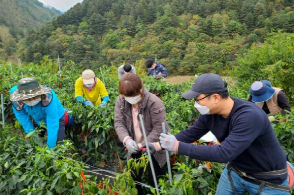 정선군청 기획관실 직원들은 15일 코로나19 장기화와 영농철 부족한 일손으로 영농에 어려움을 겪고 있는 화암면 몰운리 김종식 고추재배 농가를 방문해 농촌일손 돕기를 실시했다.