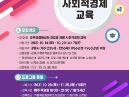 이 강좌는 지난 7월 강릉여성새로일하기센터의 취창업동아리 회원들을 대상으로 한 워크숍을 통해 발굴한 교육프로그램으로 관내 경력단절여성의 창업수요와 부족한 창업인프라 여건 등을 고려하여 사회적경제 창업을 위한 기본교육과정으로 운영된다.