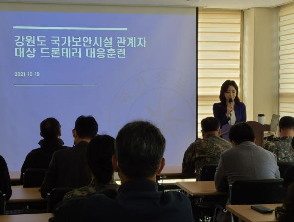 훈련은 국정원 대테러 담당관의 드론테러ㆍ보안사고 사례 및 드론 대응지침 소개를 시작으로 항공안전기술원 강현우 미래항공연구실장의 ‘국내 드론산업 활성화를 위한 노력과 과제’ 제하 특강과 방산업체 LIG넥스원의 안티드론 장비 시연회, 참석기관 관계자들의 드론격추 실습 및 강원소방본부의 소방드론을 이용한 구조활동ㆍ2차 피해 대응 교육 등으로 진행되었다.