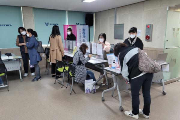 동해여성새로일하기센터에서는 취업을 희망하는 여성구직자들의 취업지원 서비스를 제공하고자 “찾아가는 새일센터”를 10월21일 10시부터 13시까지 “2021 강원여성 일자리·이야기 한마당”에서 운영 하였으며 총15명이 구직신청 하였고 직업훈련, 사후관리 등에 큰 반응을 주셨다.