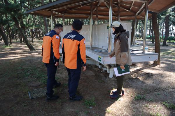 이번 점검은 야영장 내 화재예방을 중심으로 안전 관리, 위생관리 등을 점검했다. 특히 야영장 내 소화기 배치와 대여용 일산화탄소 경보기의 정상 유지 상태 등을 확인했다.