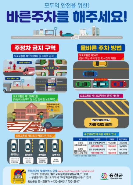 홍천군은 개정된 도로교통법이 지난 10월 21일 시행됨에 따라 어린이보호구역 내 주·정차가 전면 금지된다고 밝혔다.