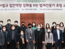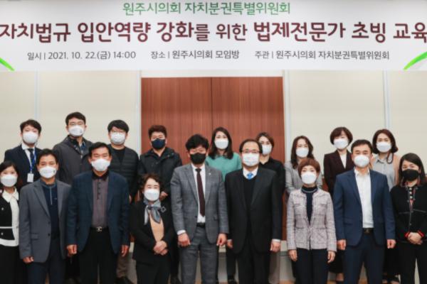 원주시의회 자치분권특별위원회는 22일 오후 2시 의회에서 자치법규 입안 관련 자체교육을 실시하며 활동을 이어갔다.