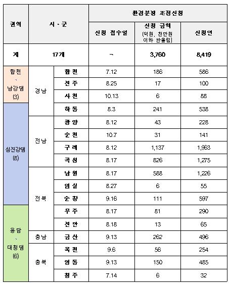 이들 17개 시군 주민들은 댐 및 하천 관리 부실을 이유로 중앙환경분쟁조정위원회에 조정신청을 냈다.