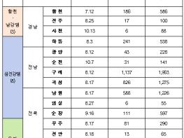 지난 7월 12일 합천을 시작으로 청주(7월 14일), 하동(8월 3일), 광양(8월 12일), 구례(8월 12일), 곡성(8월 17일), 남원(8월 17일), 무주(8월 17일), 진안(8월 18일), 진주(8월 25일), 임실(8월 27일), 옥천(9월 6일), 금산(9월 13일), 영동(9월 13일), 순창(9월 16일), 순천(10월 7일) 순으로 조정신청이 접수됐다.