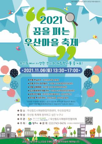 우산동 도시재생현장지원센터는 오는 11월 6일 우산동 일원에서 ‘2021 꿈을 펴는 우산마을 축제’를 개최한다고 밝혔다.