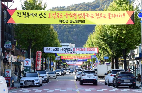 화천군 군납협의회는 지난 25일부터 화천읍 중앙로 등 주요 시가지에 국방부의 결정을 규탄하고, 이를 철회할 것을 요구하는 수 십여장의 현수막을 게시했다.