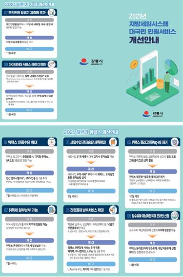 강릉시는 올해부터 위택스 등 지방세입시스템 민원서비스를 개선하여 올 하반기부터 운영하고 있다.