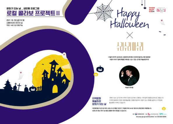 「로컬 콜라보 프로젝트Ⅱ」는 할로윈 영상, 소품, 설치물 등을 이용해 공간구성, 마술공연으로 시민들에게 공연관람 및 전시체험 기회를 무료로 제공한다. 현재 코로나19 방역지침에 따라 전시실 내 관람 인원 제한으로 티켓오픈 동시 예매 마감되었다.