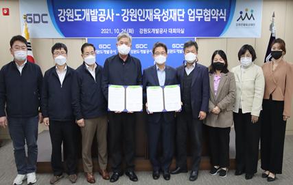 강원인재육성재단은 지난 26일 강원도개발공사 대회의실에서, 강원개발공사와‘도내 인적자원 육성과 지역 상생’을 위한 업무협약을 체결했다고 밝혔다.