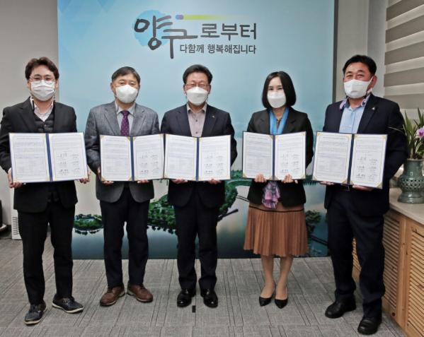 양구군은 춘천서인병원과 아름다운동행요양원, 사랑의집요양원, 강원도지체장애인협회 양구군지회, 양구지역자활센터와 오늘(27일) 오전 양구군청에서 재가 의료급여 시범사업 협력기관 협약을 체결했다.