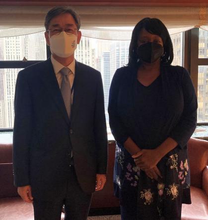 함상욱 외교부 다자외교조정관은 2021.10.26. 오후 미 국무부에서 보니 젠킨스(Bonnie Jenkins) 국무부 군비통제·국제안보 차관과 「한-미 고위급 군축·비확산 협의회(ROK-U.S. High-Level Disarmament and Non-proliferation Consultations)」를 개최했다.