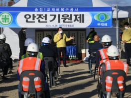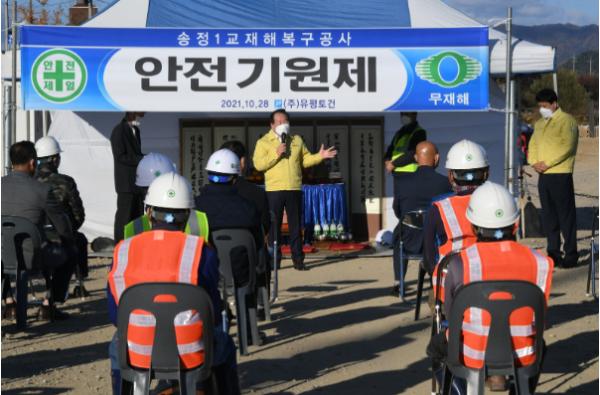 이에 따라 지난 28일, 송정1교 재해복구사업 현장에서는 무사 완공을 기원하는 안전기원제를 개최했다. 이날 안전기원제에는 한왕기 평창군수, 김진석 도의원, 평창군의회 장문혁 의원, 심현정 의원, 번영회장, 체육회장 등 지역사회단체장, 마을대표, 그 외 관계자 및 주민 등 40여명이 참석하였다.