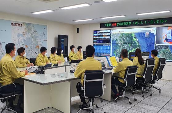 동부지방산림청은 2021년 가을철 산불조심기간(11.1.~12.15.)을 맞아 11월 1일 현판식을 갖고 산불방지대책본부를 본격 가동한다고 밝혔다.