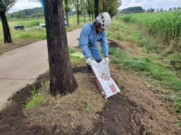이에 따라 식재 지역의 보습력 향상과 양분 함량을 높이기 위해 수분조절 파이프 설치 및 토양환경 개선을 통해 수목의 수세 증진 등의 관리를 위한 생육환경개선사업을 9월 말부터 10월 중순까지 2천만 원의 사업비로 시행했다.