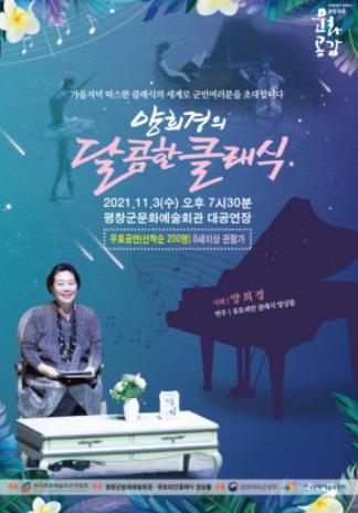 오는 11월 3일 오후 7시 30분 평창군문화예술회관 대공연장에서는'양희경의 달콤한 클래식'공연이 열린다.