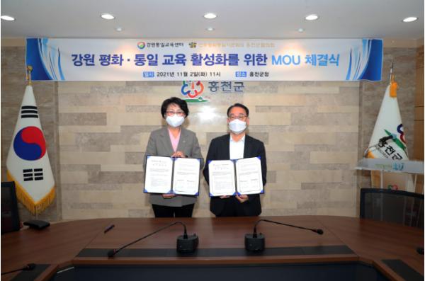 민주평화통일자문회의 홍천군협의회는 11월 2일 홍천군청 행정상황실에서 강원통일교육센터와 업무협약을 체결했다.