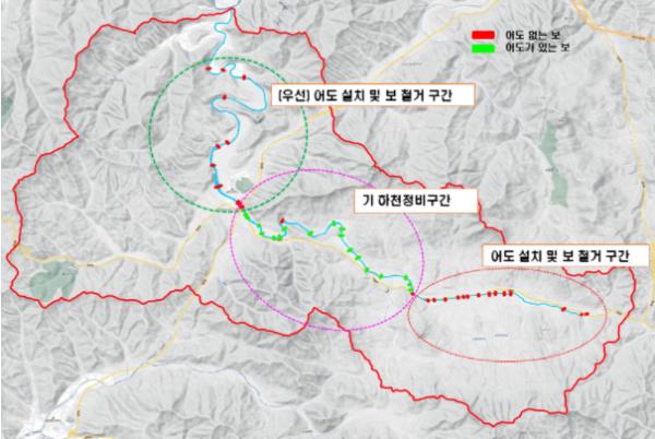 이에 따라 군은 오는 2024년까지 도·군비 및 수계기금 167억원을 투입, 홍천군 남면 유치리부터 용수리까지 지방하천인 양덕원천 18㎞ 구간 내 보 철거·개선을 통해 물의 흐름을 개선하고 어도 신설·개선, 생물서식처·생태습지 조성, 친수 공간 등을 조성할 계획이다.