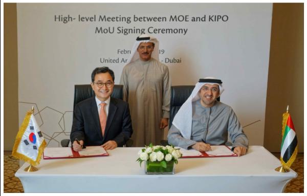 박원주 특허청장은 술탄 빈 사이드 알 만수리 UAE 경제부 장관이 참석한 가운데 알 쉬히 UAE 경제부 차관과 2월 19일 두바이에서 특허심사 수행범위 확대를 위한 MOU를 체결하고 지재권 보호에 관한 협력도 강화해 나가기로 합의했다.