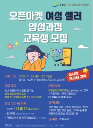(재)강원도일자리재단은 비대면 온라인 창업을 희망하는 여성을 대상으로 「오픈마켓 여성 셀러 양성교육」교육생을 모집한다.