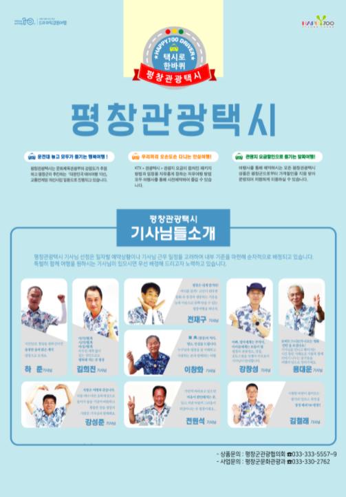 또한, 평창관광택시는 운행거리에 따라 요금을 징수하는 일반택시와 달리 이용한 시간만큼 이용요금을 지불하는 형태로 개별관광 자유여행객들에게 호응을 얻고 있는 가운데 평창관광 택시패스는 관광객의 여행 자유도를 높이는 계기가 될 전망이다.