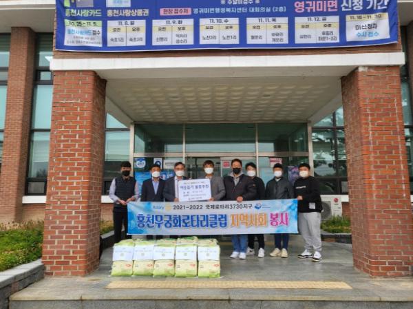 홍천무궁화로타리클럽은 11월 5일 영귀미면 행정복지센터를 방문, 쌀(10kg) 30포대를 기탁했다.