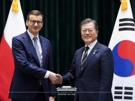 헝가리를 국빈 방문 중인 문재인 대통령은 11월 4일 헝가리에서 개최된 제2차 한-비세그라드 그룹(V4) 정상회의에 참석한 마테우슈 모라비에츠키(Mateusz Morawiecki) 폴란드 총리와 정상회담을 갖고 양국 관계 발전에 관해 폭넓은 대화를 나눴다.