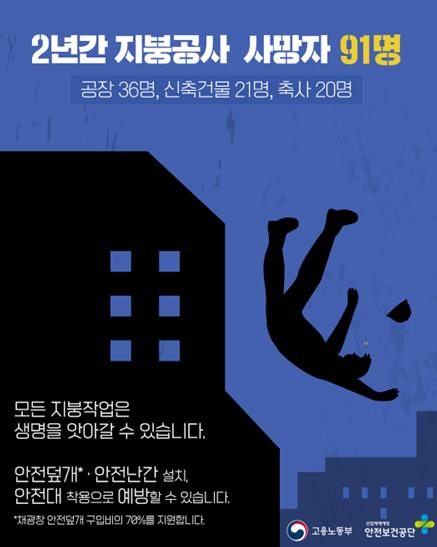 한편, 지난 2년간(`19~`20년) 공장·축사 등의 지붕공사 중 추락하여 사망한 근로자는 총 91명이다.