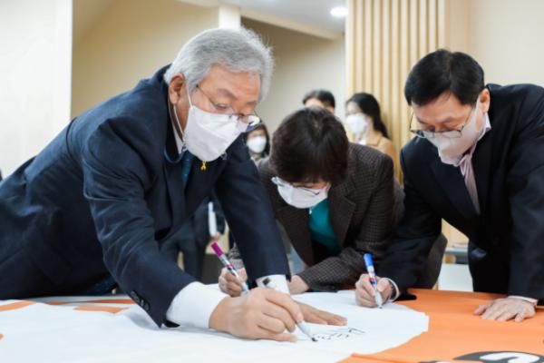 2022 수능 수험생들을 위한 응원과 격려의 글이 가득한 대형 펼침막은 8일부터 수능을 치르는 18일까지 청사 외벽에 게시될 예정이다.