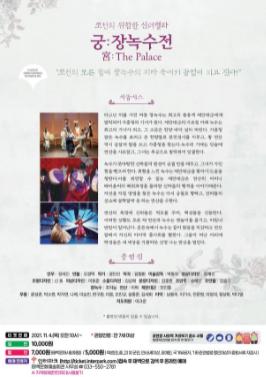 기획공연은 오는 12일 오후 7시 '궁: 장녹수전'이 진행되며, 관람료는 전석 1만 원으로 티켓예매는 진행 중이다.