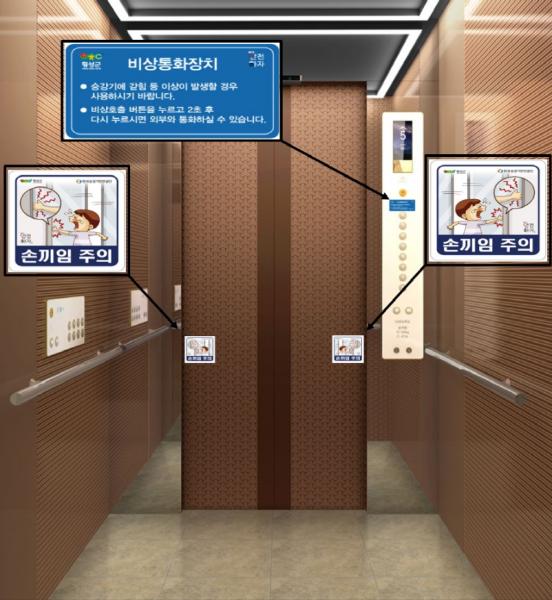 군은 12개의 유지관리업체와 함께 에스컬레이터, 덤웨이터 등 일부 승강기를 제외한 약 400여 개의 승강기에 승강기 안전 스티커 4종을 부착할 예정이다.