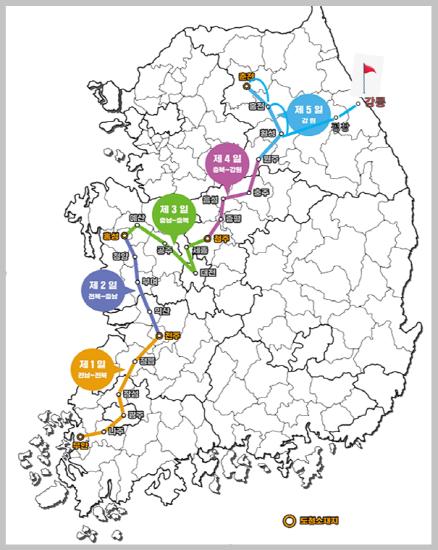대회 구간은 전남 무안에서 출발하여 광주, 전북, 충남, 세종, 대전, 충북, 강원의 각 시·도청을 경유하여, 강릉에 도착하는 총 50개 구간 264.5km에 달하는 레이스를 펼친다.
