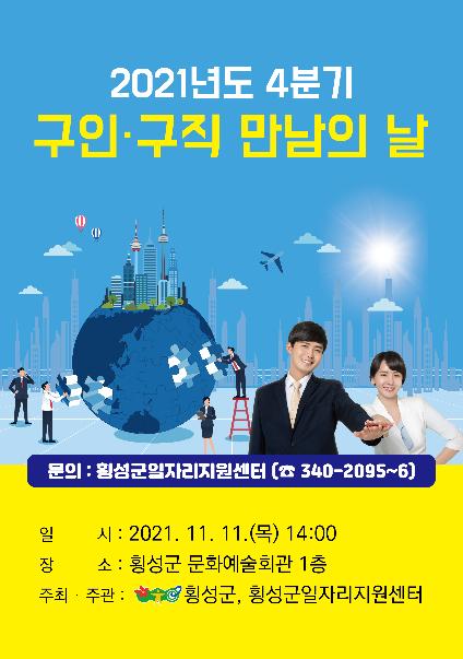 횡성군은‘2021년 구인·구직 만남의 날’을 11일, 오후 2시부터 4시까지 횡성문화예술회관 1층에서 개최하였다.
