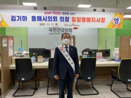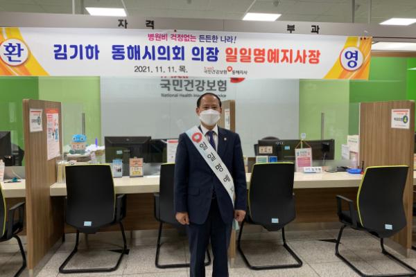 동해시의회는 김기하 동해시의회의장이 11일, 국민건강보험공단 동해지사 ‘일일 명예 지사장’으로 위촉되어 동해지사 현황 및 공단의 주요 현안사항을 청취하며 일일 명예 지사장으로서 직무를 수행했다고 밝혔다.