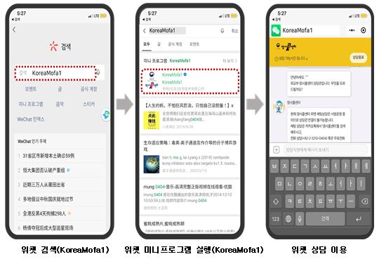 중국 등 카카오톡이 잘 되지 않는 지역의 사각지대 해소를 위해 ‘위챗‘ 서비스를 제공하여 우리 국민이 어느 나라에서든 불편 없이 영사콜센터 상담을 받을 수 있게 하였다.