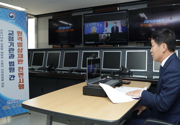 이에 법무부와 법원행정처는 영상재판 적용범위 확대에 대한 민·형사소송법 개정과 함께 교정시설 내 수용자에 대하여 영상재판을 실시하기 위한 실무 협의를 시작하였으며, 전국 법원에 2,946개 영상법정 개설이 완료됨에 따라 금년 10월 법무부에서도 전국 교정기관에 영상재판용 장비 및 네트워크 설치 작업을 완료했다.
