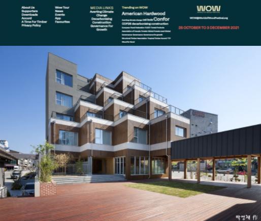 산림청 국립산림과학원은 세계 목재 축제(WOW, World of Wood Festival)에 국립산림과학원이 준공한 한그린 목조관(경북 영주)이 소개되었다고 밝혔다.