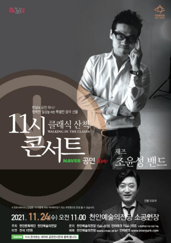 천안문화재단은 ‘해설이 있는 11시 콘서트- 재즈그룹 조윤성 밴드’ 콘서트가 오는 24일 오전 11시 천안예술의전당 소공연장에서 열린다고 밝혔다.