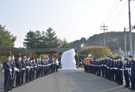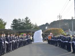 부여소방서 의용소방대연합회는 18일 부여소방서에서 의용소방대의 날을 기념해 해태상 제막식을 치렀다.