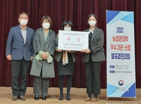 청주시농업인대학은 지난 17일 농촌진흥청에서 주관한 「2021년 농업인대학 우수기관 선정 경진대회」에서 ‘대상’에 선정되었다.