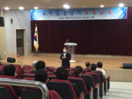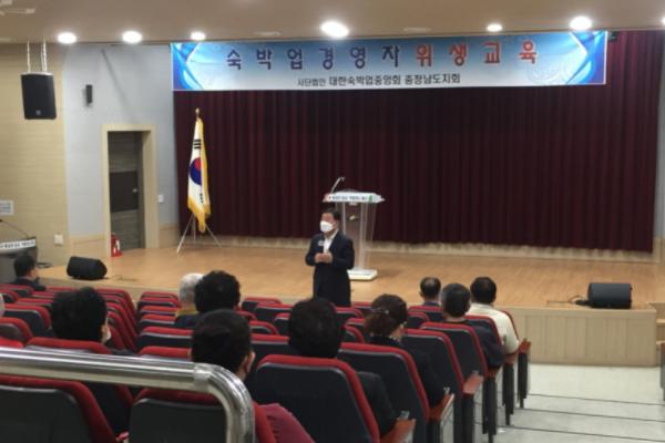 (사)대한숙박업중앙회 충남도지회가 주관한 이번 교육은 공중위생관리법에 따른 정기 위생교육으로 숙박업소의 위생관리와 공중위생관련 법규 해설, 소양 교육 등 업주가 갖춰야 할 위생서비스 향상 방안에 대한 내용으로 진행됐다.