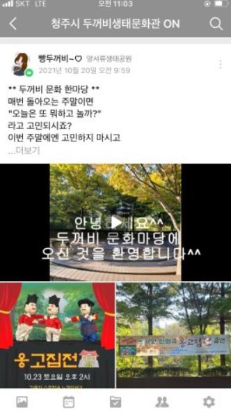 청주시 두꺼비생태문화관은 시민들과 만남이 잠시 주춤했던 작년 9월부터 비대면 프로그램으로 시민들과 함께하고자 『청주시 두꺼비생태문화관 ON』네이버밴드를 운영해 현재 가입자 300명을 돌파했다.