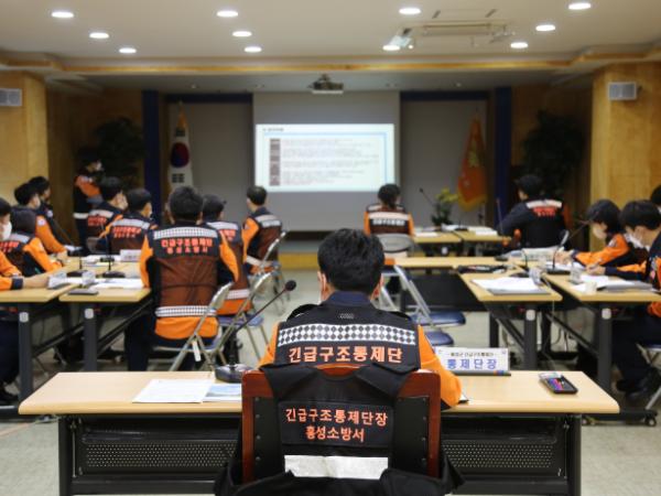 홍성소방서는 지난 19일 본서 3층 대회의실에서 재난특성에 맞는 대응능력 강화를 위한 긴급구조통제단 기능숙달 도상훈련을 실시했다고 밝혔다.