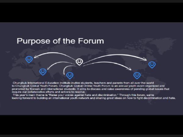 국제교육원 관계자는 “이번 행사는 2021. 글로벌 청소년 온라인 포럼 추진단 학생들이 주관하는 학생자치활동의 일환으로 추진되고 있어, 미래 글로벌 리더로서의 소통, 협력, 자기주도성, 평화감수성을 함양하고 세계시민의식을 키울수 있는 의미 있는 시간이 될 것으로 기대된다. 이를 계기로 국제교류가 더욱 활성화 되기를 바란다.”라고 말했다.