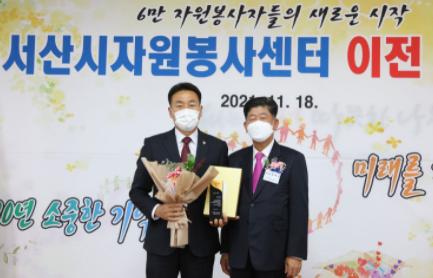 서산시의회 가충순 의원(부석·해미·고북)이 19일 자원봉사자 등 80여 명이 참석한 가운데 르셀웨딩컨벤션 건물 5층에서 진행된 서산시자원봉사센터 이전 개소식에서 자원봉사센터 이전 개소를 위해 노력해 온 그간의 공로를 인정받아 감사패를 받았다.