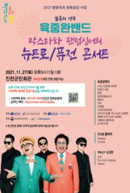 진천군이 2021년 문예회관과 함께하는 방방곡곡 문화공감 공모사업에서 선정된 ‘육중완밴드, 락스타와 팬텀싱어의 뉴트로 퓨전콘서트’를 오는 27일 오후 5시 진천군민회관에서 선보인다.