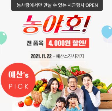 군은 농사랑 예산군 브랜드관에 입점한 관내 51개 농가(업체) 제품에 대해 판매품목 택배비(4000원)를 정액 지원하며, 제철농산물을 연계한 할인 행사를 진행한다.