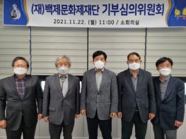 (재)백제문화제재단은 11월 22일 부여군 규암면 소재 재단 회의실에서 제1차 기부심의위원회를 개최해 위원 위촉과 2021년도 기부금품에 대한 심의를 진행했다.